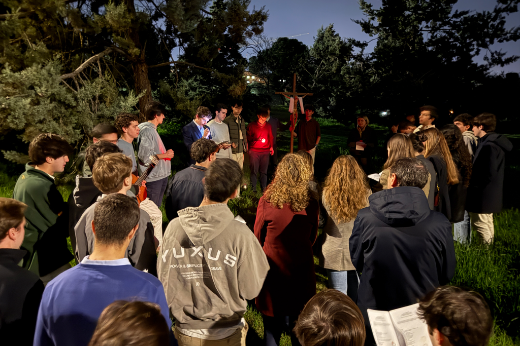 El recorrido por las catorce estaciones, por los alrededores del Colegio Mayor Jaime del Amo, es ya una tradición en estos últimos días de Cuaresma. Acompañar a Cristo en su camino hacia el Calvario para, un día, poder compartir con Él también la luz de la Resurrección.
