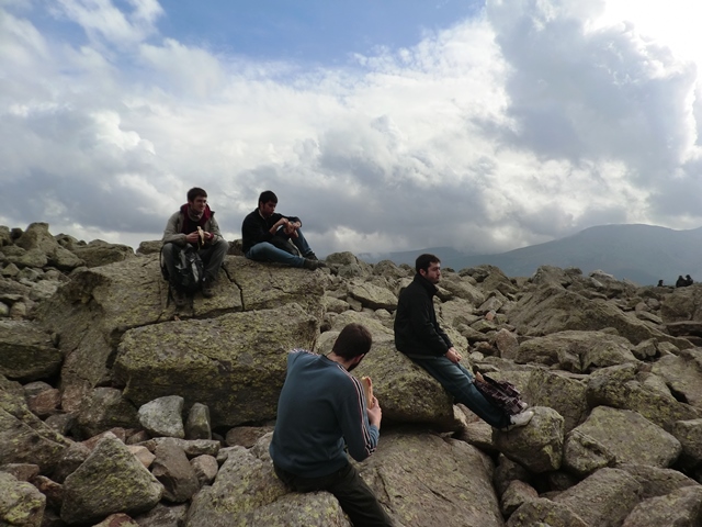Existió también la posibilidad de intentar llegar al pico, pero una repentina granizada nos obligó a desistir en el intento. Tras este breve pero intenso obstáculo meteorológico y ya con el sol a nuestra espalda realizamos un tranquilo y satisfactorio descenso, comentando con nuestros compañeros las distintas anécdotas de la ruta.