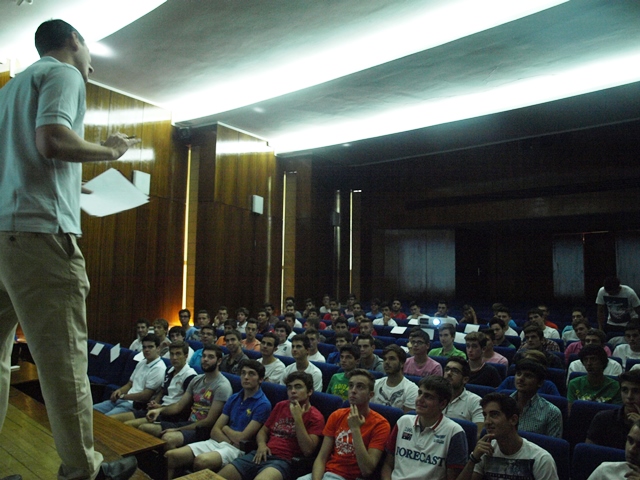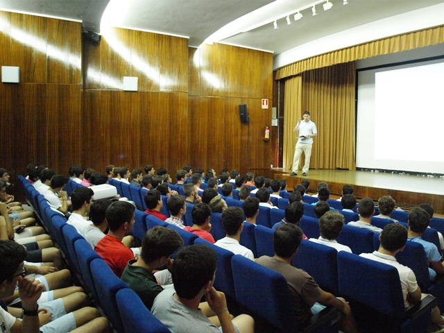 Posteriormente se reunieron en el Auditorio del Mayor para realizar un taller reflexivo sobre un problema que aqueja a los colegios mayores, las novatadas. En este caso fue impartido por el Subdirector Carlos, en un clima de sinceridad y diálogo ante un tema tan sensible.