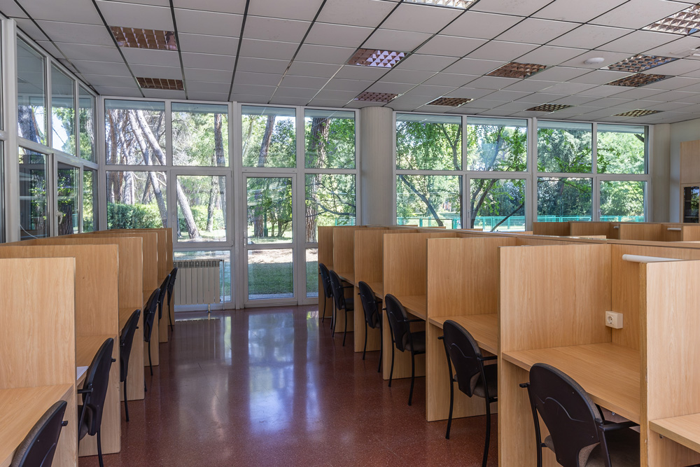 La biblioteca, los seminarios de estudio común y las aulas ofrecen un entorno óptimo para la concentración y el trabajo académico. Son espacios silenciosos, organizados y dotados de los recursos necesarios para el estudio individual o en grupo, especialmente durante los periodos de exámenes y trabajos universitarios.