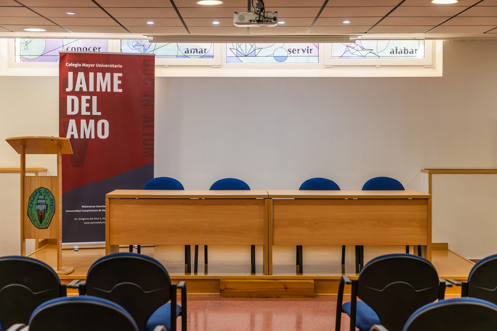Disponemos del Auditorio Gregorio del Amo y la Sala de los Directores; espacios polivalente para reuniones, encuentros formativos, actos culturales o conciertos. Estas salas están plenamente equipadas y preparadas para fomentar el aprendizaje, el diálogo y la vida académica y colegial en sus múltiples expresiones.