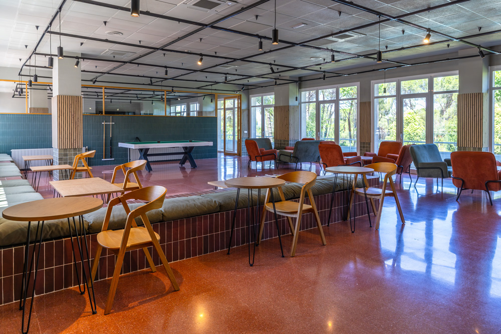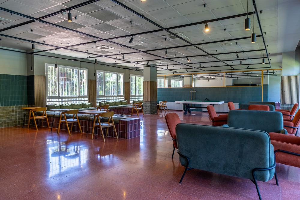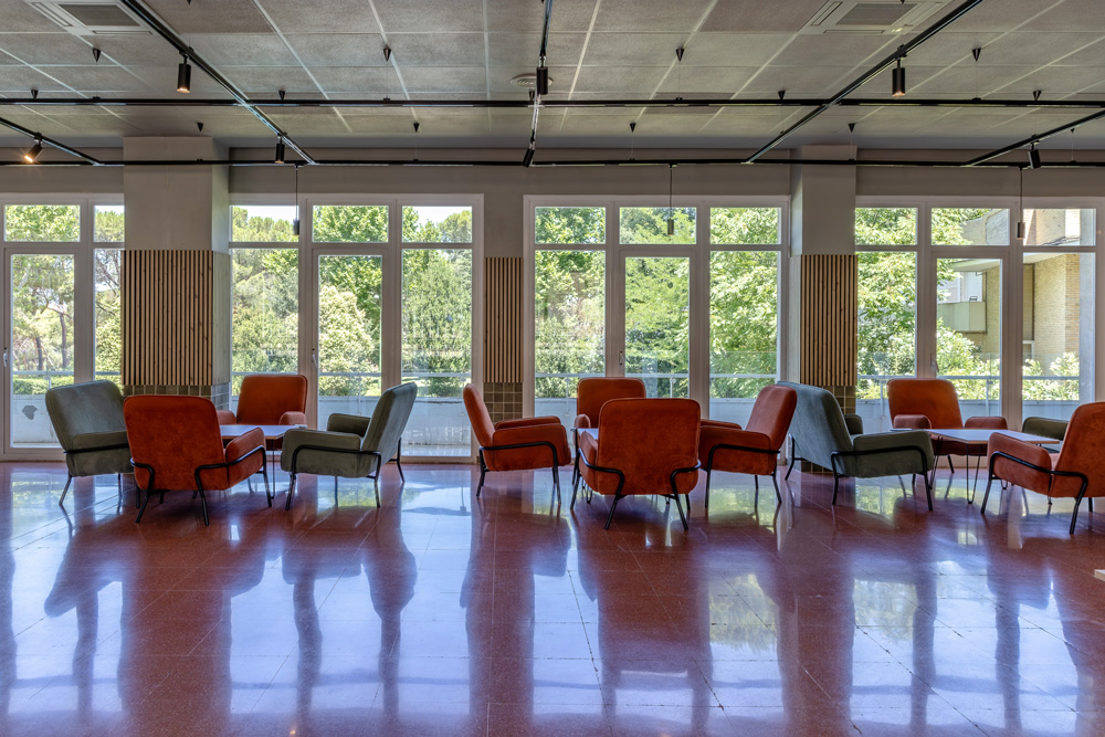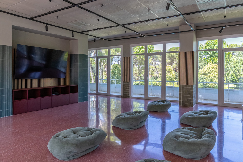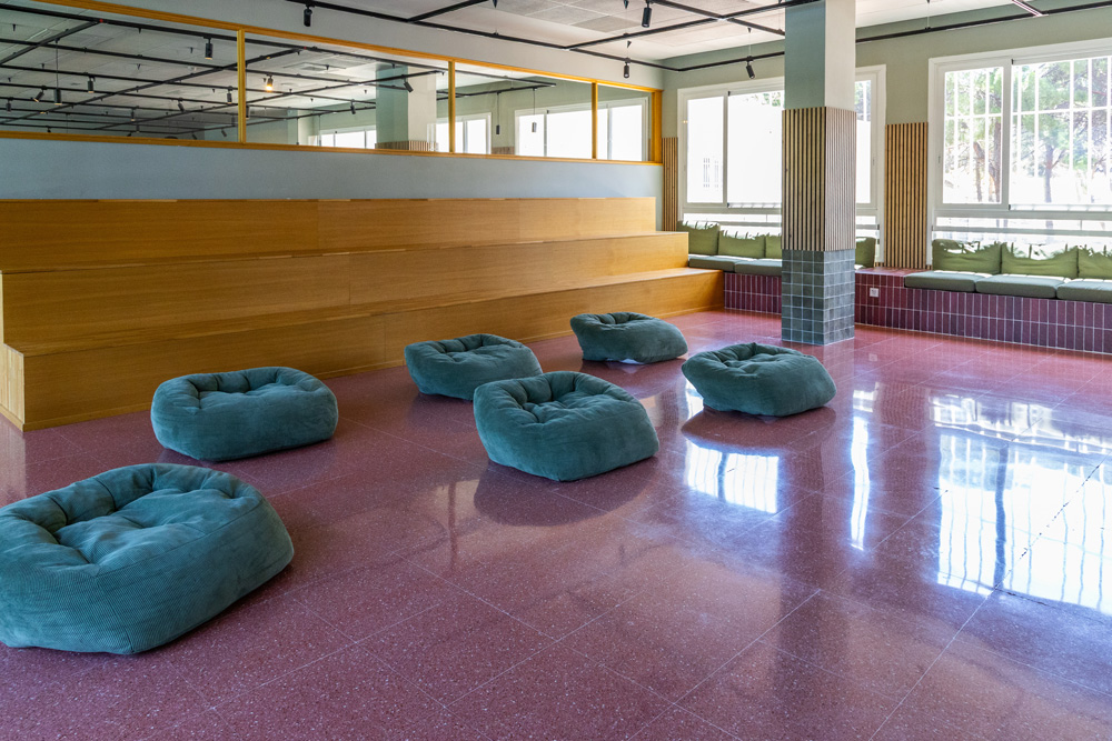 El Colegio cuenta con espacios comunes pensados para el encuentro: el Ágora para coloquios o visualización de actividades deportivas, la sala de estar para charlar o jugar, la sala de trofeos con futbolín y los bancos de la entrada. Lugares para compartir, dialogar, descansar y generar lazos de amistad. Espacios donde la convivencia se hace experiencia concreta.