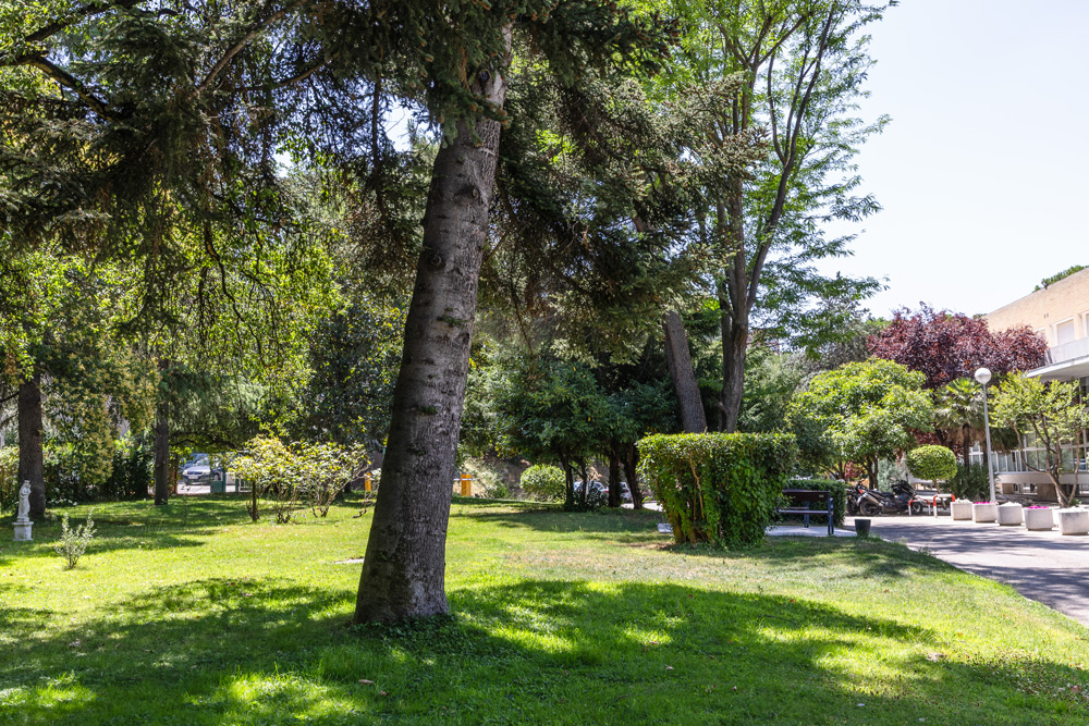 Los jardines, el pinar y la entrada ajardinada aportan belleza, serenidad y espacios para el descanso al aire libre. Ofrecen un entorno natural que equilibra el ritmo universitario y favorece el bienestar. Son también lugar de paseo, lectura o tertulia, integrados armónicamente en la vida del Colegio.