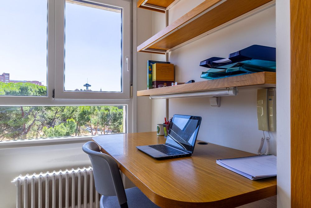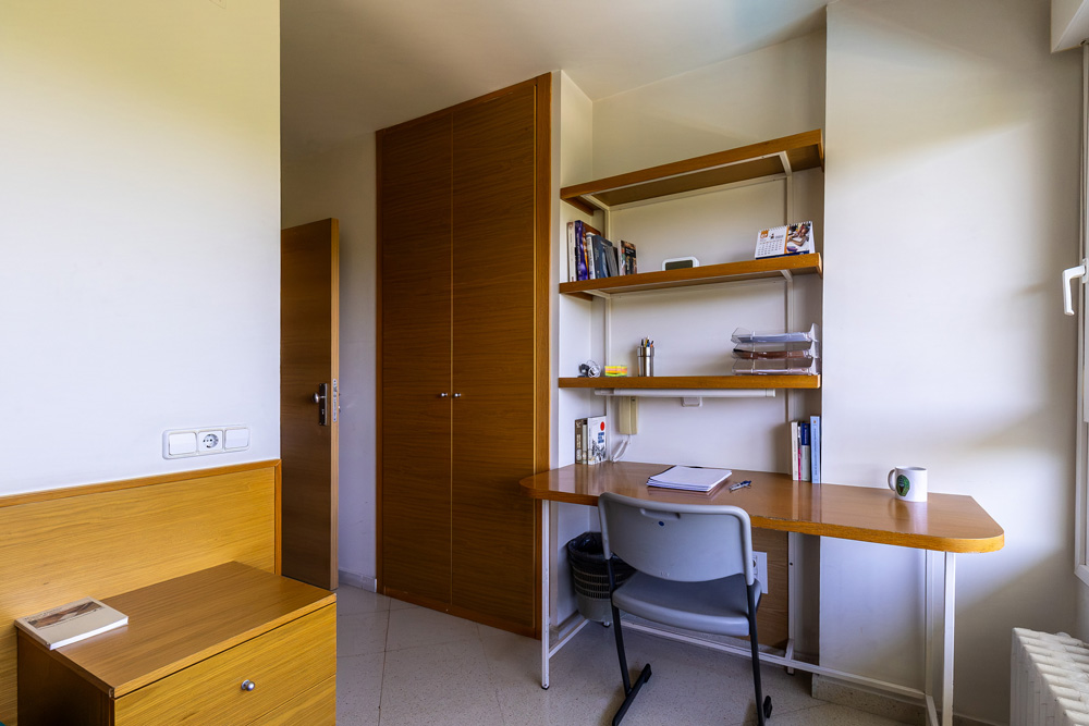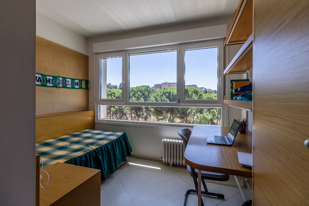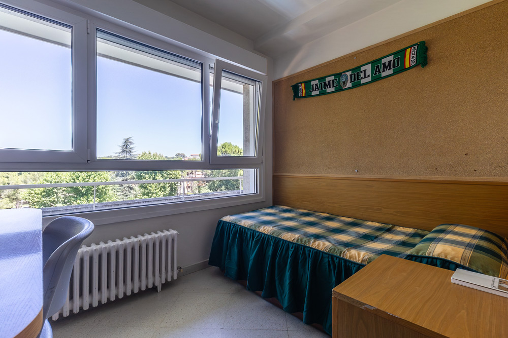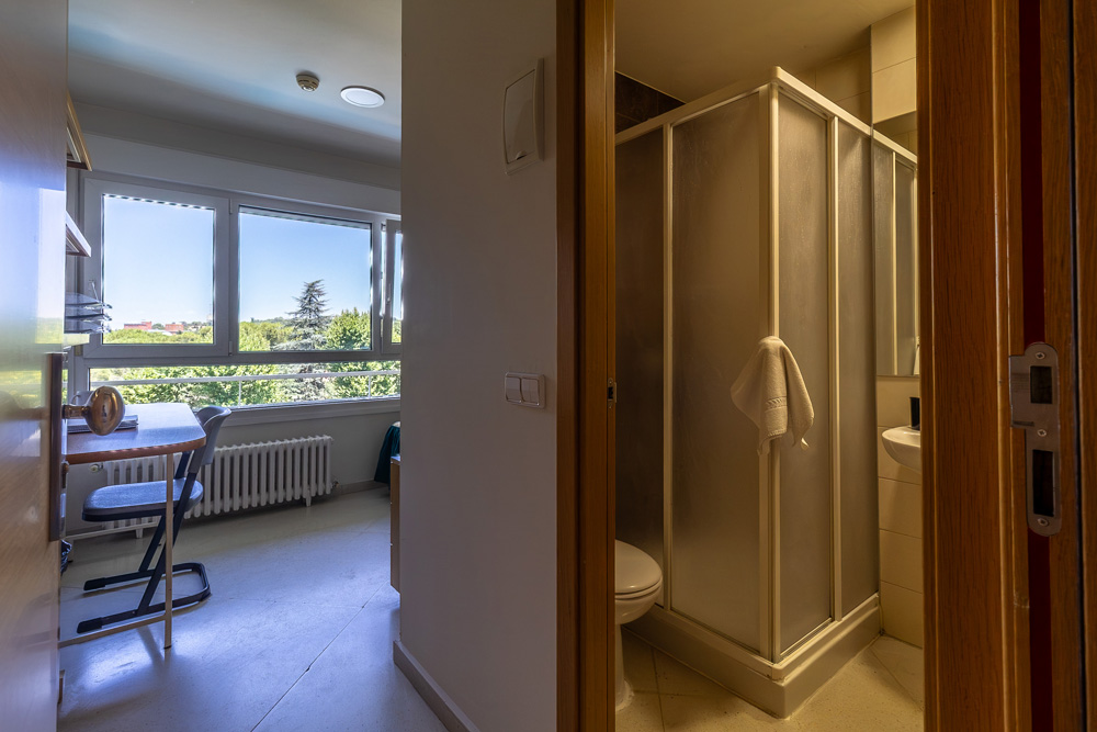 157 habitaciones individuales con baño propio, diseñadas para ofrecer comodidad, privacidad y un entorno adecuado para el estudio. Espacios amplios, funcionales y luminosos que favorecen el descanso y la organización personal en la vida universitaria. Algunas habitaciones cuentan con baño compartido entre dos, manteniendo siempre el confort y la autonomía del colegial.
