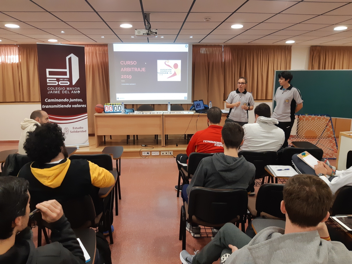 El curso fue intenso, analizando tanto normas como situaciones del juego, impartido por Fátima Martín y Raquel Hortoneda, antiguas jugadoras de la selección femenina española y de las pocas árbitros internacionales de este deporte en España. La formación duró toda la mañana hasta que tuvimos la visita de Julio Calegari, Director de Promoción Internacional de la Federación Internacional de Tchoukball, y ex jugador de la selección brasileña, quien junto a otros miembros del equipo nacional español, nos ayudaron a realizar un entrenamiento en las pistas del Jaime del Amo.