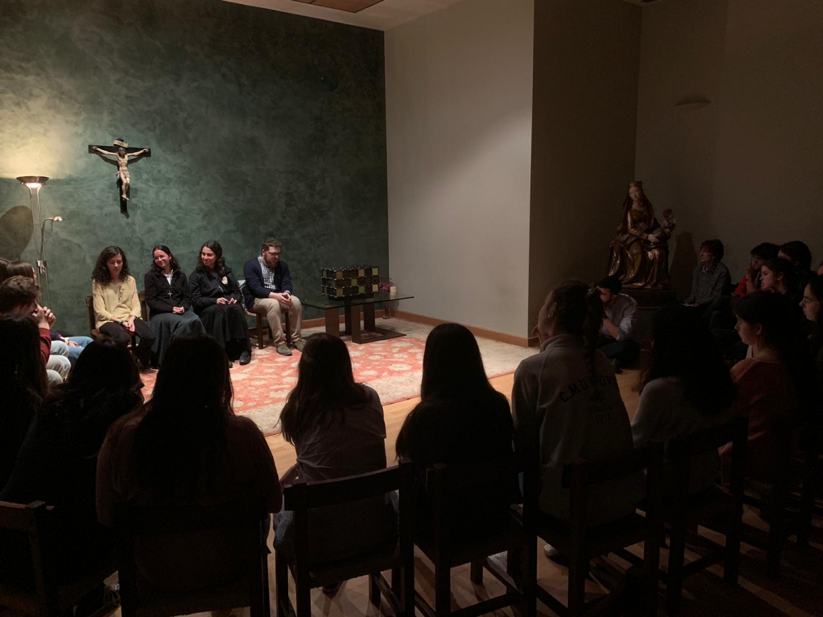 Elena y Alejandra, dos antiguas colegialas del C.M. Poveda, son hoy religiosas del Amor Misericordioso. También compartieron su experiencica de fe, Paula, una laica de la Institución Teresiana; y Salva, un estudiante para claretiano.