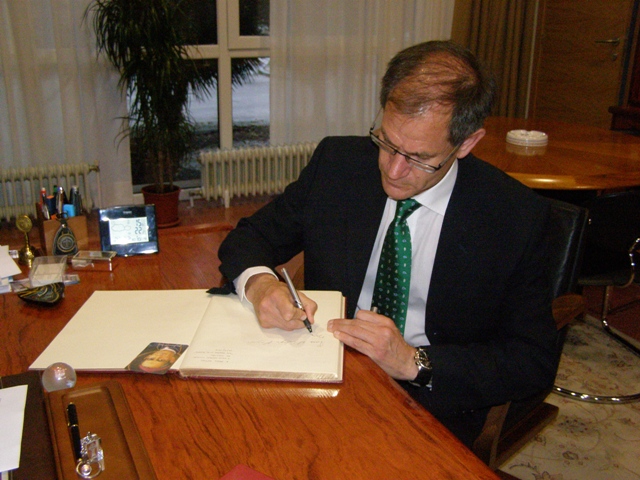 Abel Antón, que desde diciembre de 2011 es senador por Soria, hizo un hueco en su agenda para los colegiales y dejó plasmado su paso por el Mayor firmando el Libro de Honor.