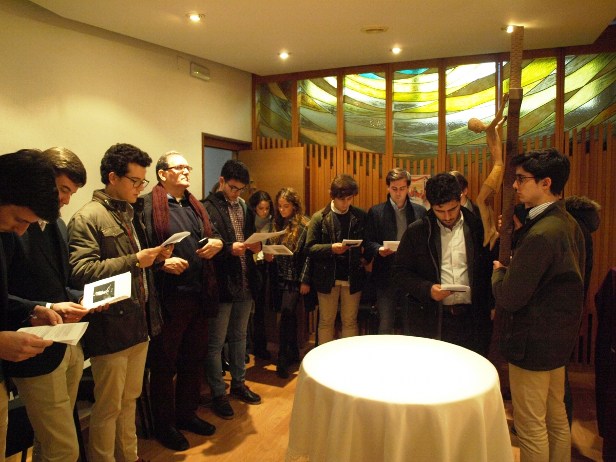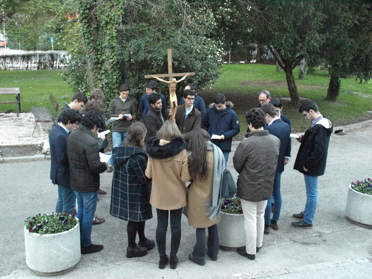 La tarde del pasado 21 de marzo estuvo marcada por el Via Crucis, acto que, como ya viene siendo costumbre en nuestro Mayor, reunió a numerosos colegiales y que nos sirvió para afrontar la Semana Santa con el corazón abierto y el espíritu renovado. Este camino de pasión, que viene organizando el Área de Religiosas desde hace tres años, fue dirigido en esta ocasión por el P. Teodoro Bahillo, director del Mayor.