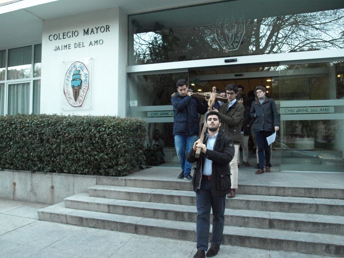 Artículo realizado por Enrique Enrile Sánchez, al que le agradecemos también su colaboración con Pedro Cifuentes Martínez, delegado del Área de Actividades Religiosas, para la organización del Via Crucis. Todas las fotos en nuestro perfil de Facebook: https://www.facebook.com/pg/Colegio-Mayor-Universitario-Jaime-del-Amo-355399384644717/photos/?tab=album&album_id=838583696326281