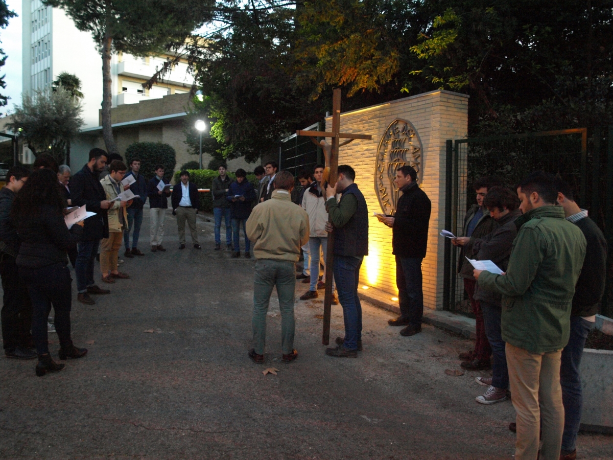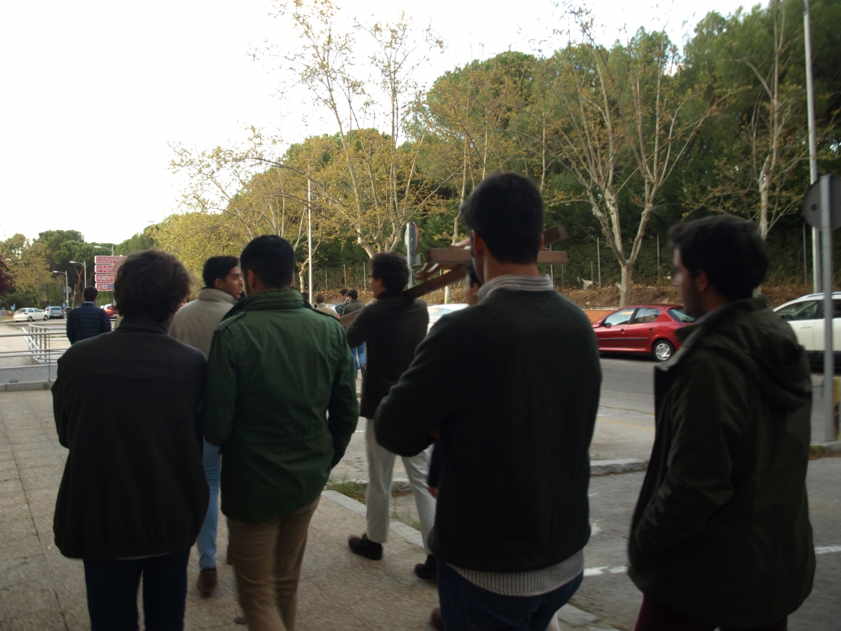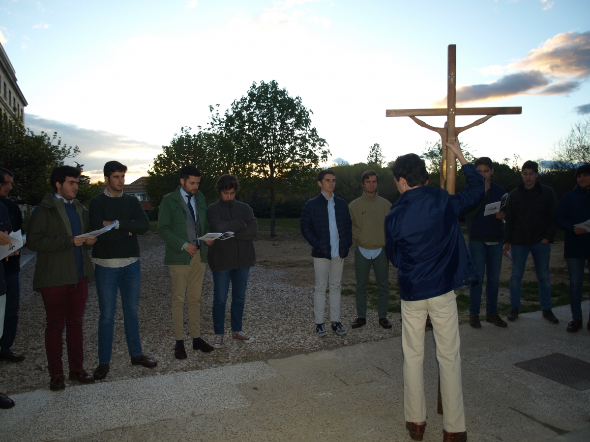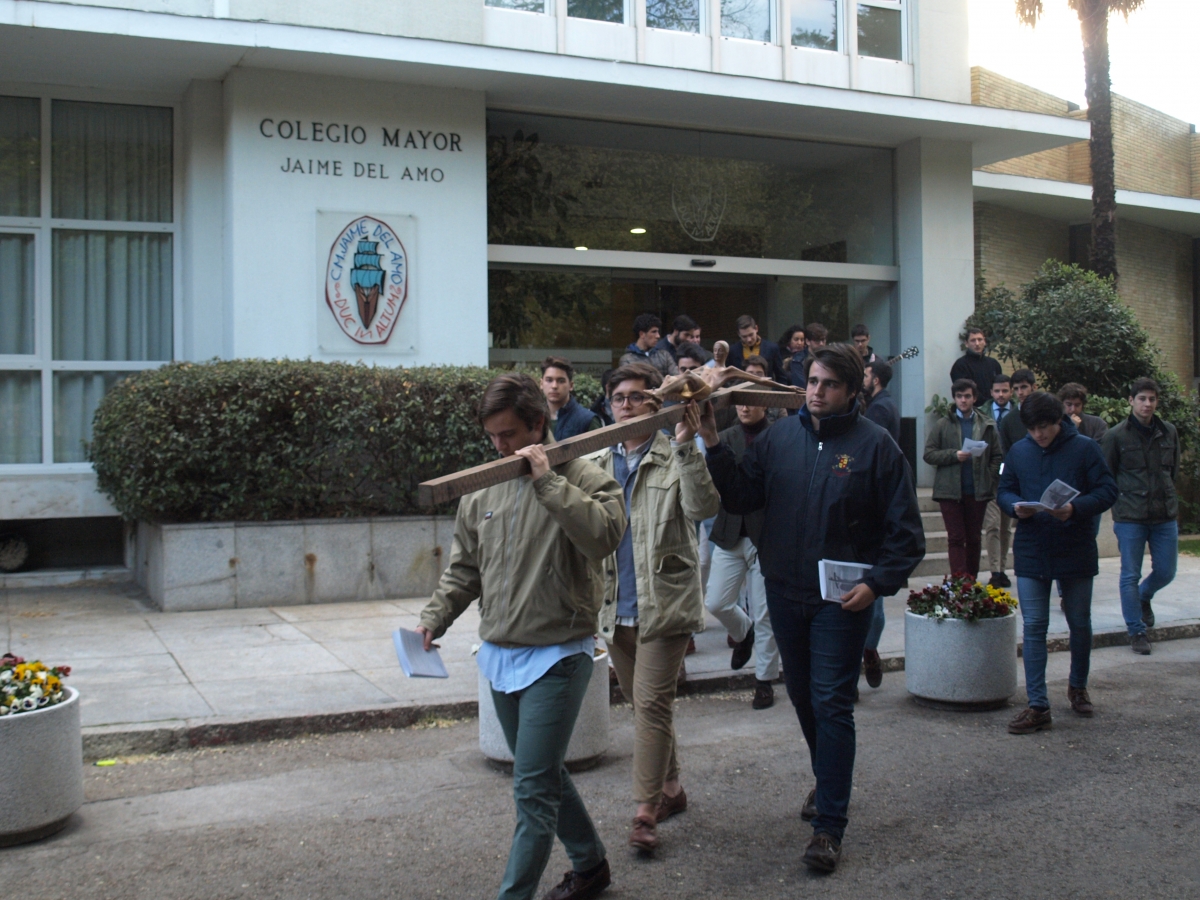 Las catorce estaciones de este rezo nos fueron guiando por los alrededores del Colegio Mayor Jaime del Amo, pero lo que es más importante, nos guio también en las claves para vivir la Pascua. La palabra de Dios nunca es inocua, y las reflexiones preparadas para nuestros jóvenes, universitarios y cristianos, fueron el material principal sobre el que se ofrece este momento de caminar juntos hacia la Pascua.