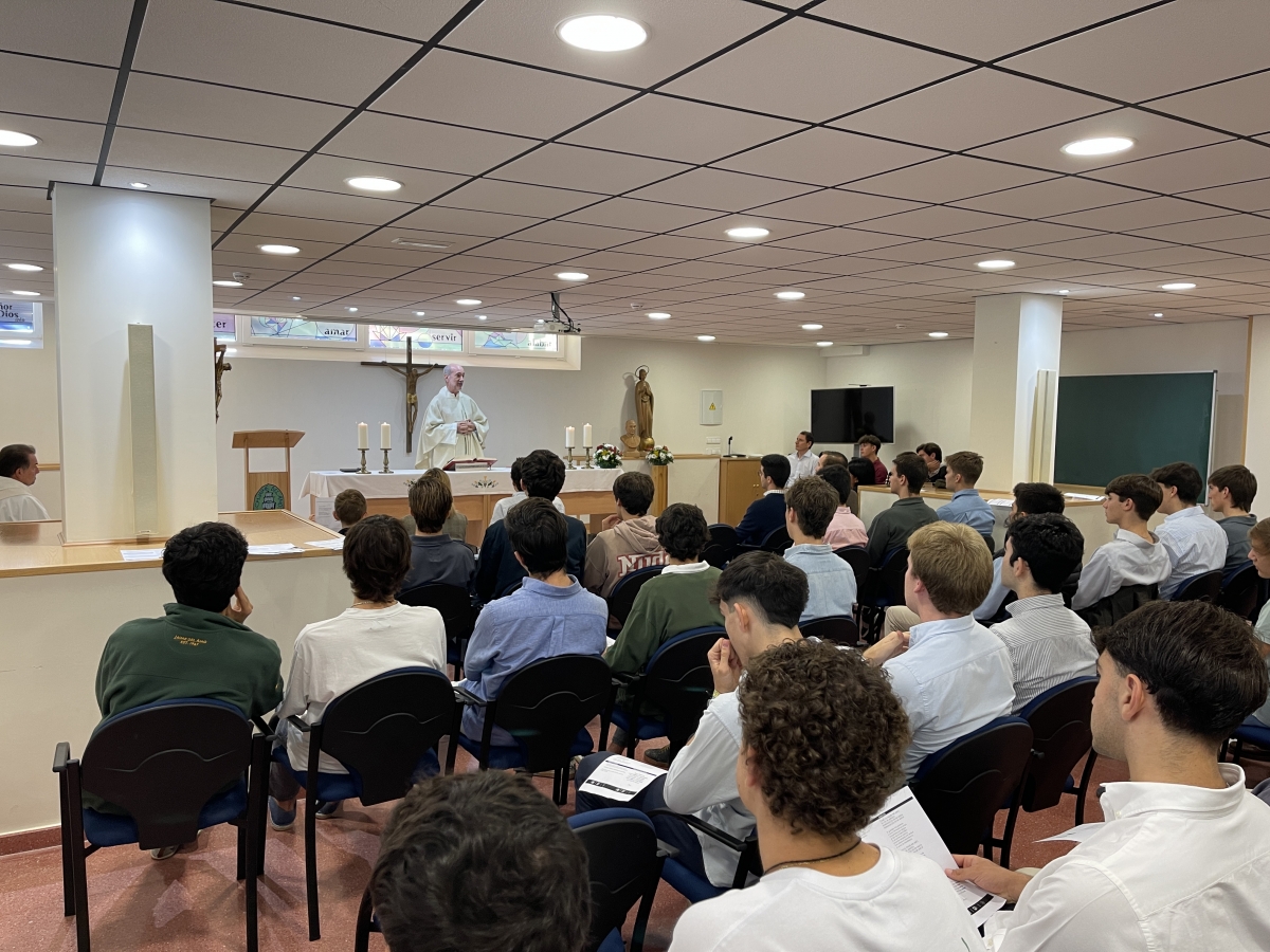 El miércoles se celebró un “café con la comunidad”, un espacio informal en el que los colegiales pudieron compartir y conocer un poco más personalmente con los misioneros claretianos que conviven todo el curso en la Comunidad de los Colegios Mayores. La propuesta contó con una dinámica de presentación en la que los colegiales debían adivinar la canción favorita de los religiosos y sonaron temas como “Imagine” de John Lennon, “My way” de Frank Sinatra o «Gracias por elegirme» de Los Secretos.