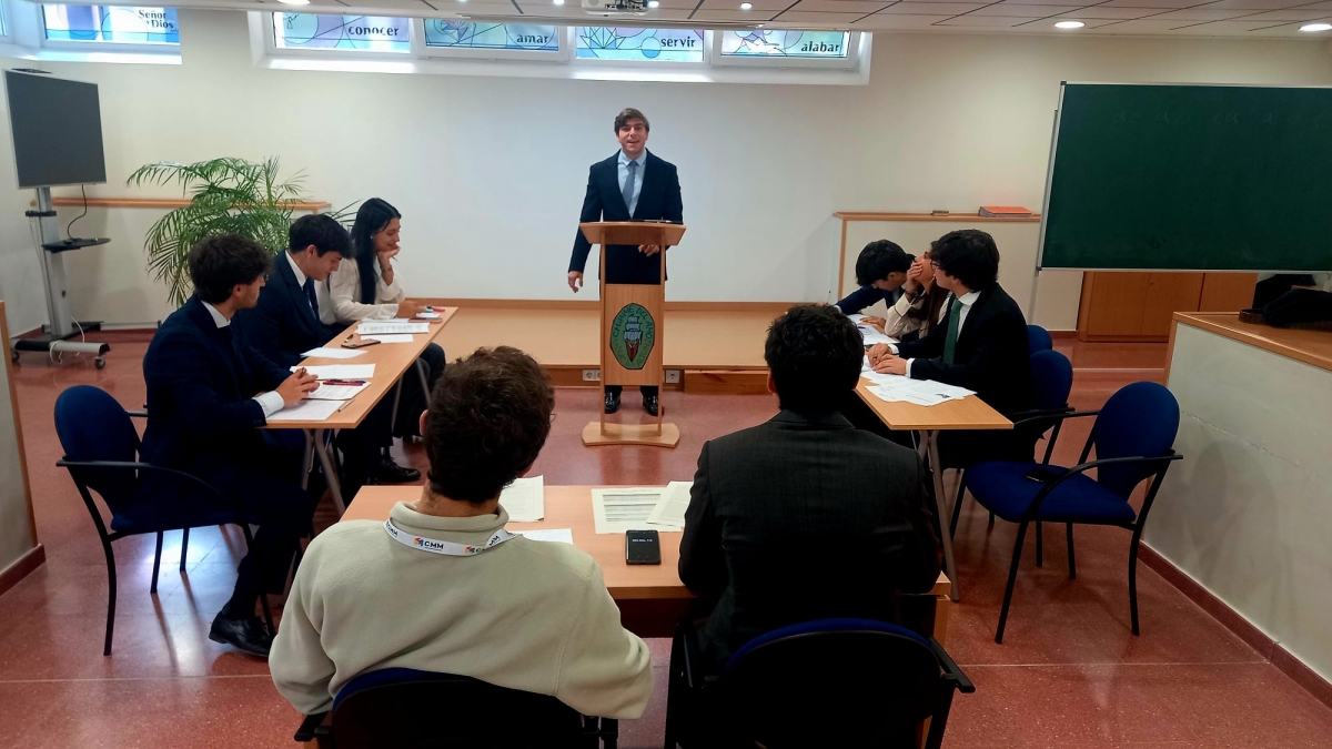 Tras la apertura, los equipos comenzaron a debatir sobre la pregunta: «¿Deberían las universidades españolas adoptar un modelo de educación semipresencial?» . Un tema que resonó profundamente en los asistentes, ya que abarca desde los retos tecnológicos, hasta la adaptación pedagógica y social de los estudiantes. La jornada se desarrolló en un ambiente de respeto y compañerismo, característico del espíritu colegial del Jaime del Amo.