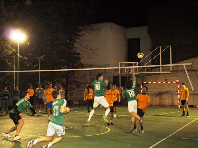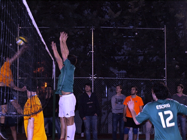Linda noche vivieron los «jaimitos» que fueron a ver a su equipo de voley en el partido de ida que se disputó fuera de casa, en el Colegio Mayor Ahuja. El comienzo no fue bueno, quizá por la presión del ambiente, o porque el equipo del Jaime empezó frío pero se perdió el primer set sin atenuantes por 25 a 18 para el Ahuja.