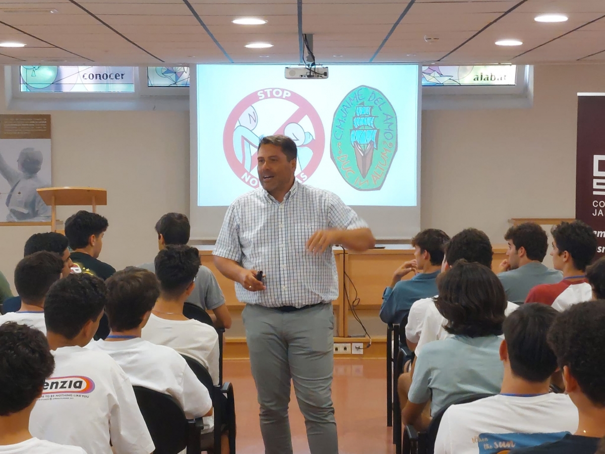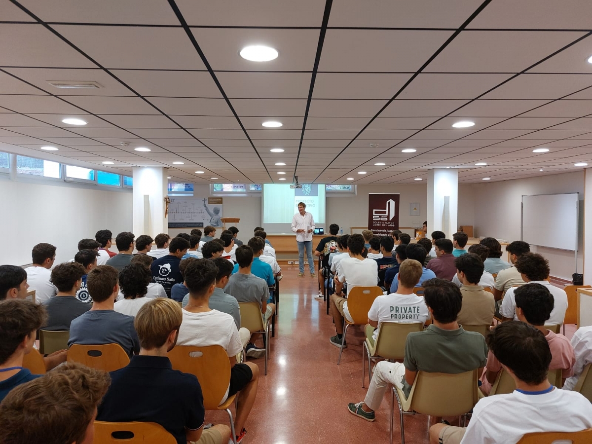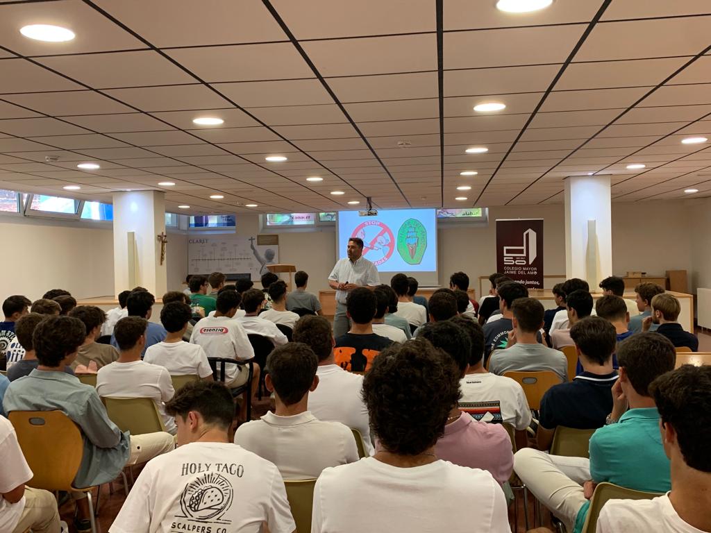 A continuación, como última actividad guiada del día, e impartido por el subdirector Manuel Córdoba Raigón, tuvimos el taller “Asertividad frente a las Novatadas”. Lamentablemente, a día de hoy, y a pesar de la evolución de nuestra sociedad y el gran sentido solidario que siempre se palpa en el Colegio, sigue siendo necesaria esta actividad para tratar de acercar a los nuevos colegiales a lo que se enfrentan en el mes de septiembre. Nuestro Mayor, totalmente contrario a estas prácticas, no elude la responsabilidad de trabajar esta cuestión, porque mal que nos pese, somos conscientes de que siguen existiendo.