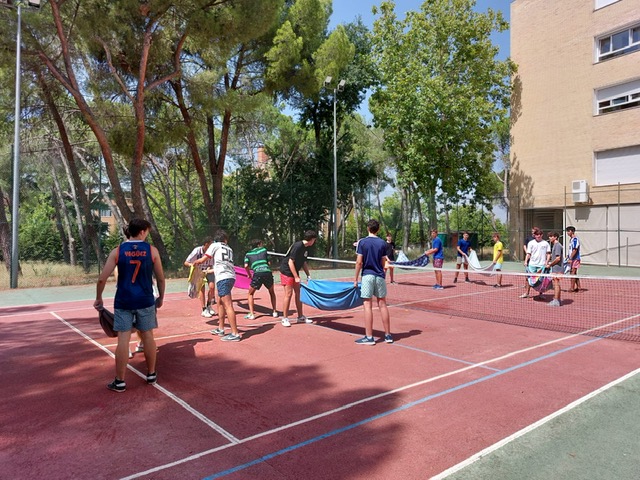 Posteriormente disfrutaron de actividades deportivas, con juegos alternativos, que sirvió para seguir conociéndose y generando cohesión entre los colegiales. Esta parte más lúdica de la mañana terminó con la comida en el jardín, donde pudimos dar buena cuenta de una deliciosa paella.