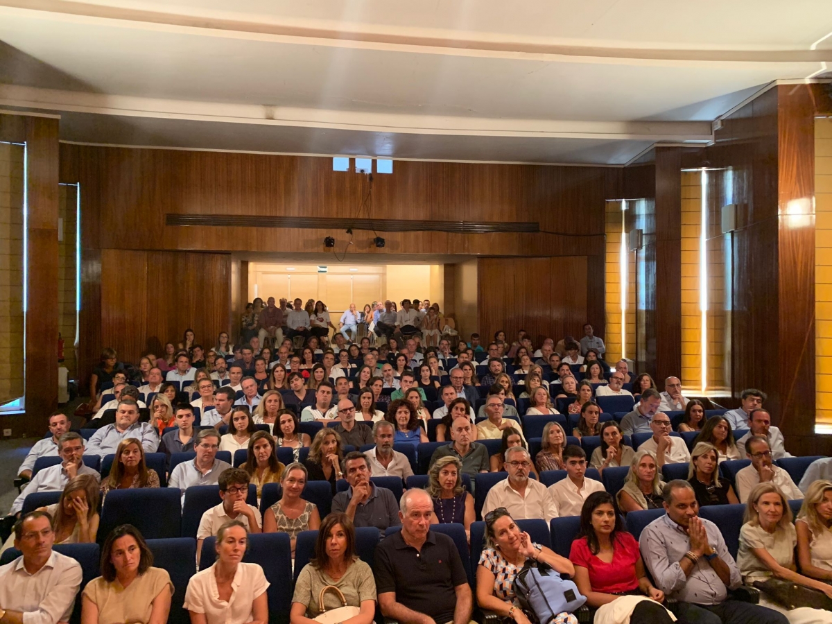 Tras las actividades nos hicimos la foto de familia de la promoción. Este año, dadas las condiciones climatológicas, no pudimos hacerla en el lugar clásico, la escalinata de la fachada, pero quedó muy bonita en el Auditorio Gregorio del Amo.